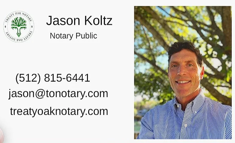 Hello, I’m Jason Koltz the proud owner of Treaty Oak Notary. We are grateful for the opportunity to share our services with you. I am committed to offering a friendly and reliable experience you can trust.